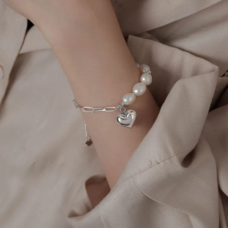 Классический натуральный барочный жемчуг 925 стерлингового серебра браслет на цепочке с геометрическим узором в форме сердца Кулон Браслет-манжета 2021 новые модные ювелирные изделия