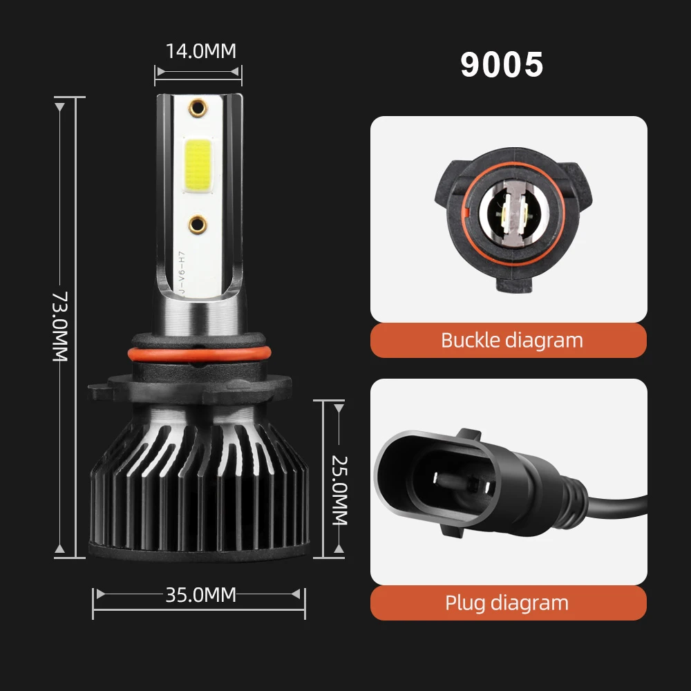 Светодиодсветодиодный лампы ovigel 2 шт., лампы H1, H3, H4, H7, H8, H9, H11, 9005, HB3, 9006, HB4, 12000 лм, 6000K, без вентилятора