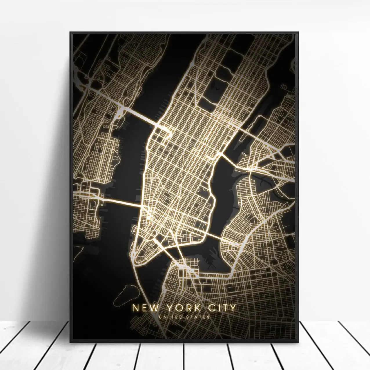Черно-Золотая холщовая Настенная карта с изображением Нью-Орлеана, ...