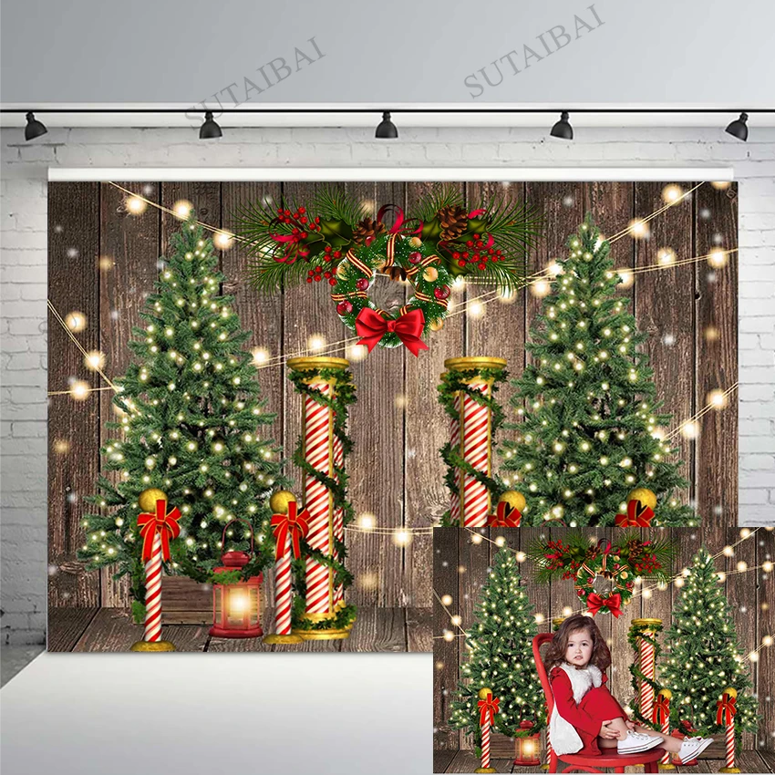 Рождественский фон Рождественская сосна деревенский деревянный фон Снежный венок новогодний Праздник праздник вечерние ринка Декор баннер фотосъемка