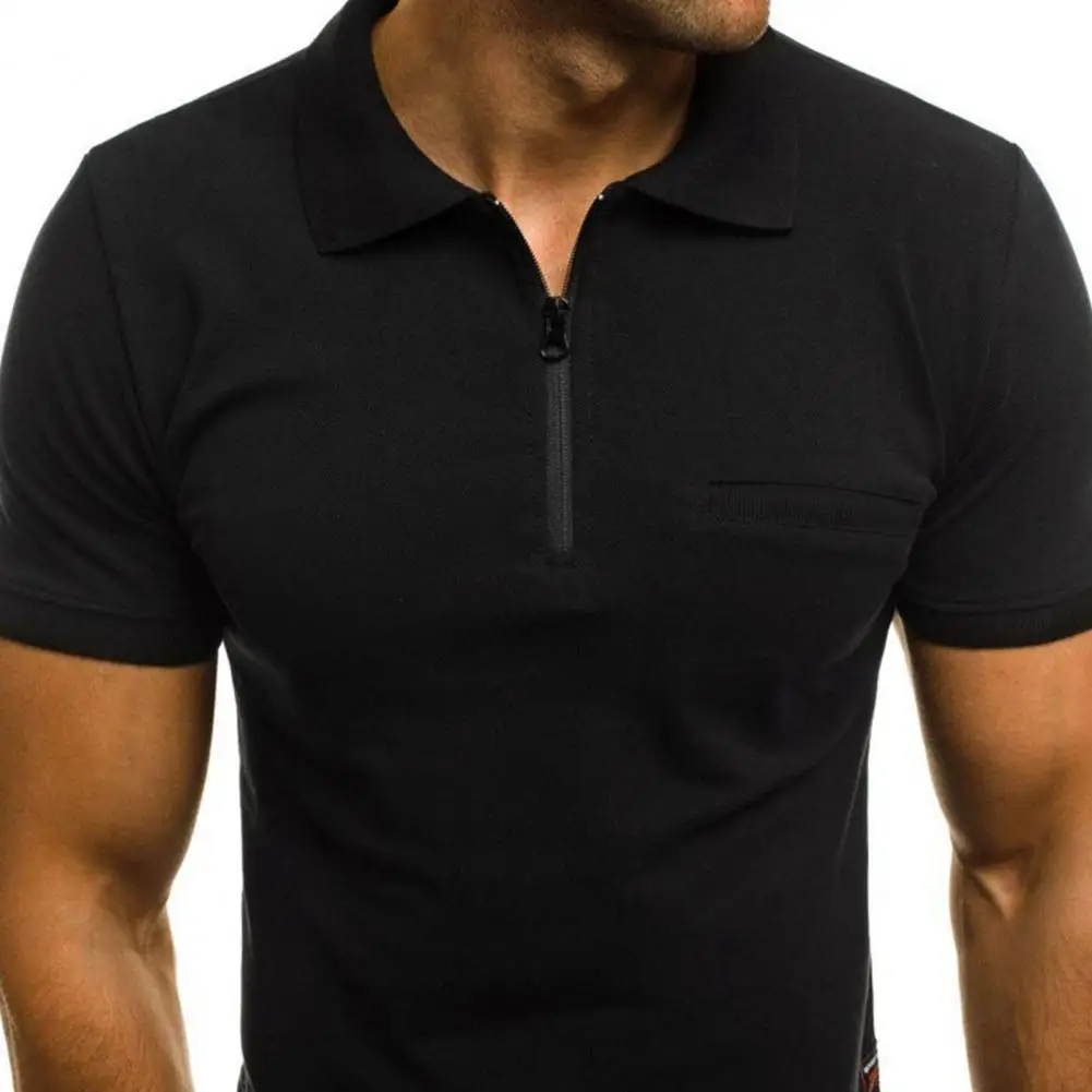 Модная Летняя мужская рубашка-поло повседневное одноцветное Цвет молния мужской свободного кроя с короткими рукавами, рубашка с отложным воротником и вечерние уличная тенниски для мальчиков