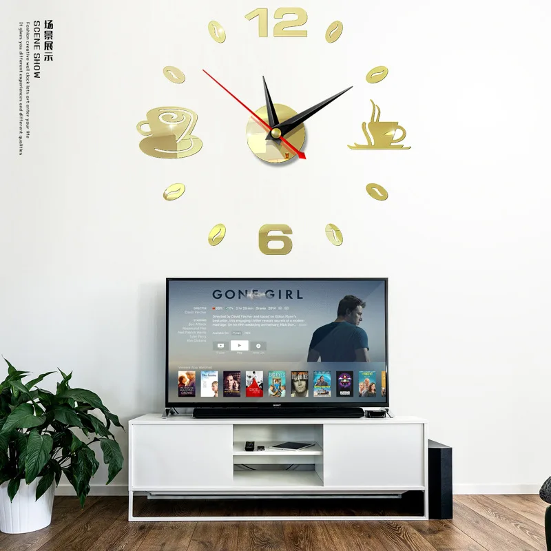 Самоклеящиеся кухонные 3D аналоговые домашние водонепроницаемые настенные часы искусство DIY Mute современные зеркальные кофейные чашки декор акриловые настенные часы
