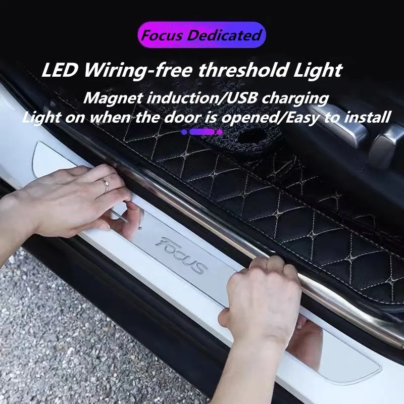 Автомобильная светодиодная педаль с питанием от USB, лампа для защиты от царапин, накладки на порог для Ford Focus, декоративный светильник, аксессуары