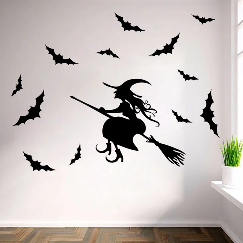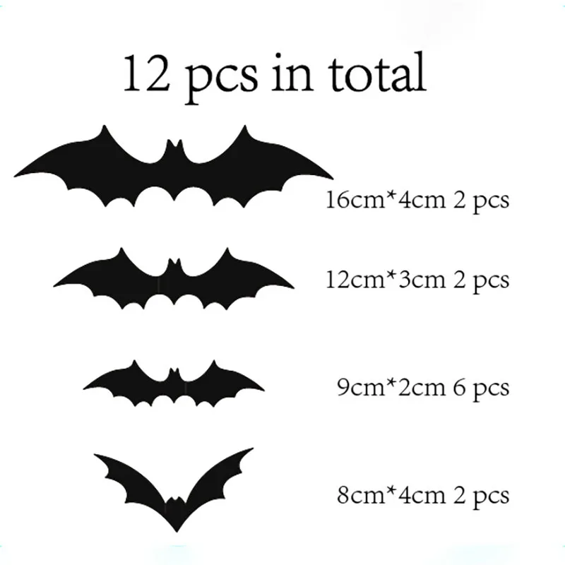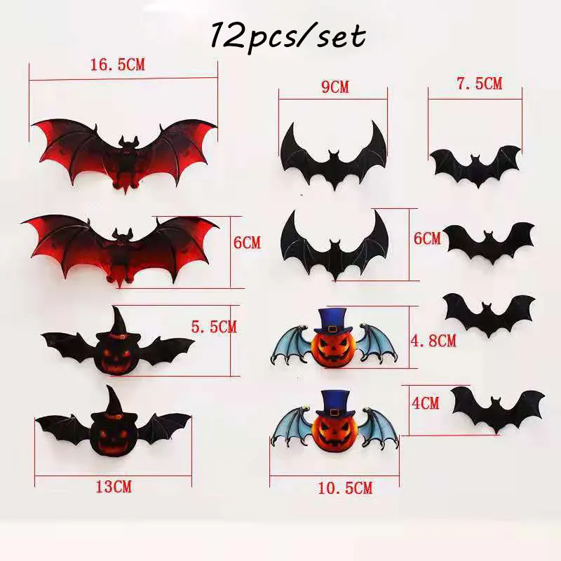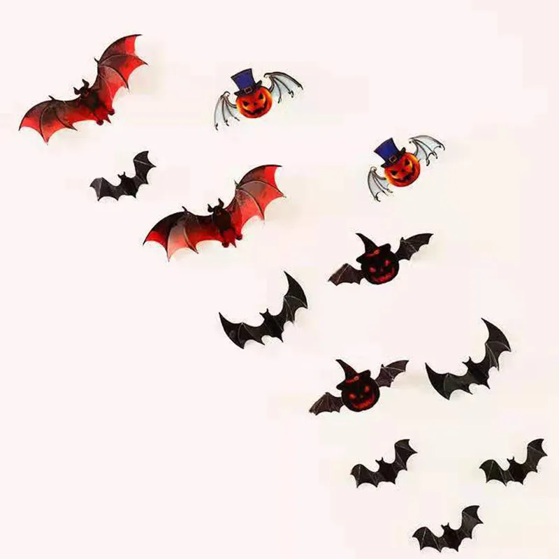 12 шт.компл. 3D красно-черная стерео Наклейка на стену летучая мышь DIY Декор для Хэллоуина тыква летучая мышь ПВХ наклейка s украшения для вечевечерние на Хэллоуин
