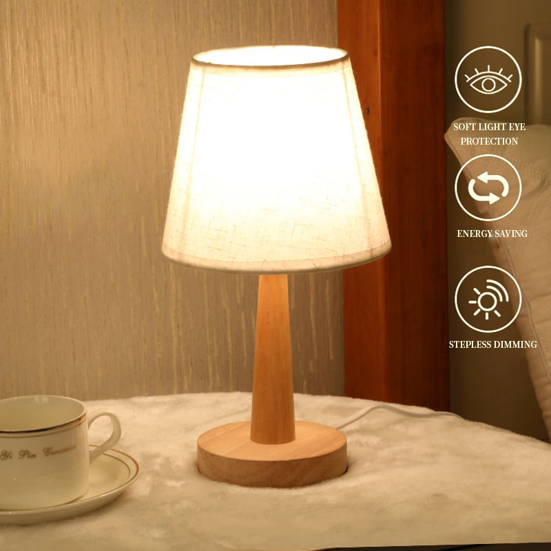 Деревянная настольная лампа с регулировкой яркости, креативная настольная лампа в европейском стиле для спальни, кабинета, спальни