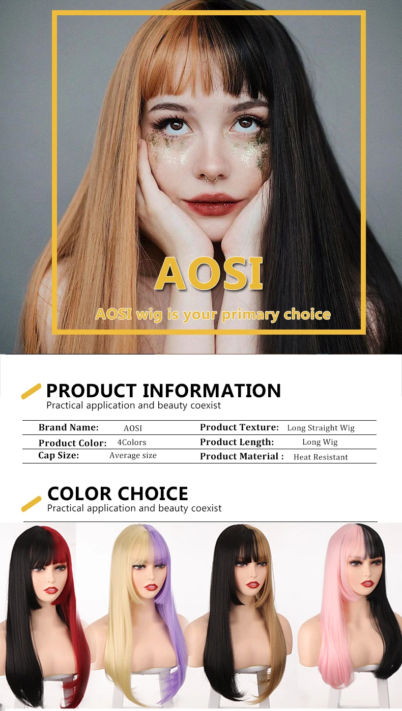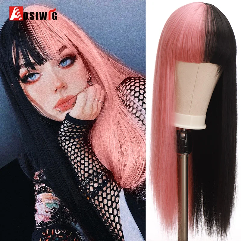 Wig 1Half Pink Red Blonde Black Wig Long Straight Wig