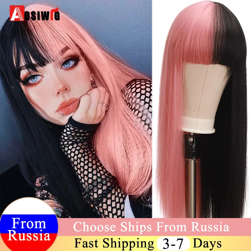 AOSI Лолита Косплей длинный парик половина розовый блонд черный пря...