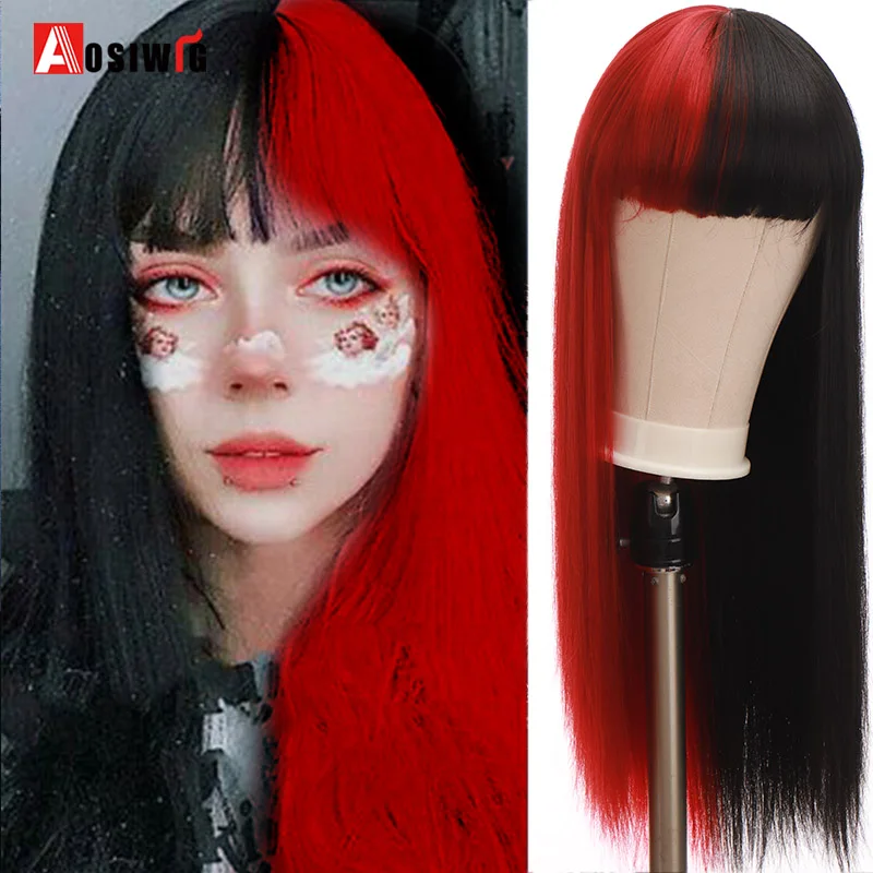 AOSIWIG длинный парик Лолита прямые половинчатые розовые светлые красные натуральные волосы искусственные аниме ежедневные синтетические Косплей парики с челкой для женщин