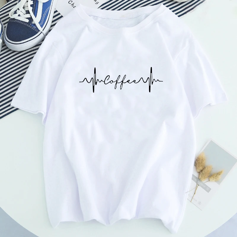 Футболка женская с электрокардиограммой, модная Простая Повседневная рубашка с круглым вырезом, с коротким рукавом, размера плюс XXXL