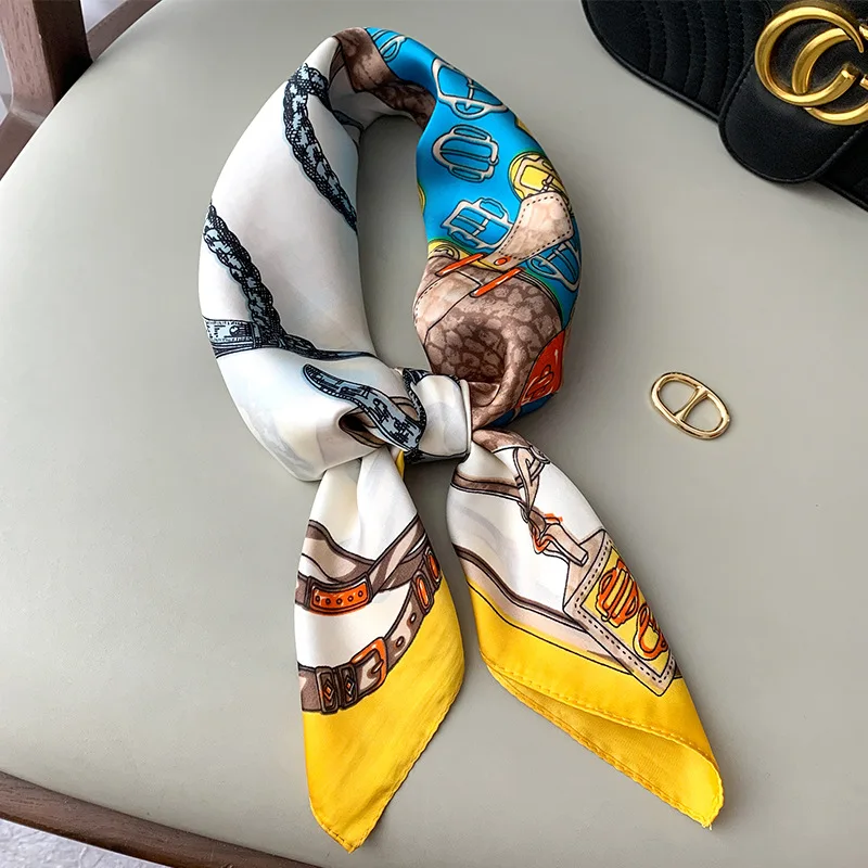 Шелковый шарф для женщин, квадратная шаль 70 см, сумочка с принтом,...