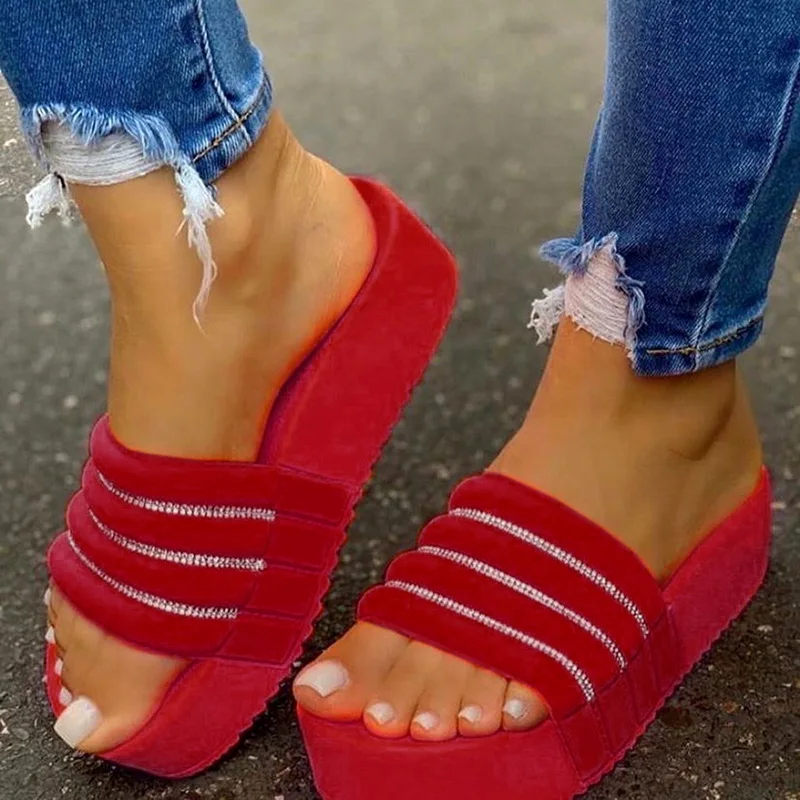 Босоножки женские на платформе, пляжные сандалии с блестящими крист...