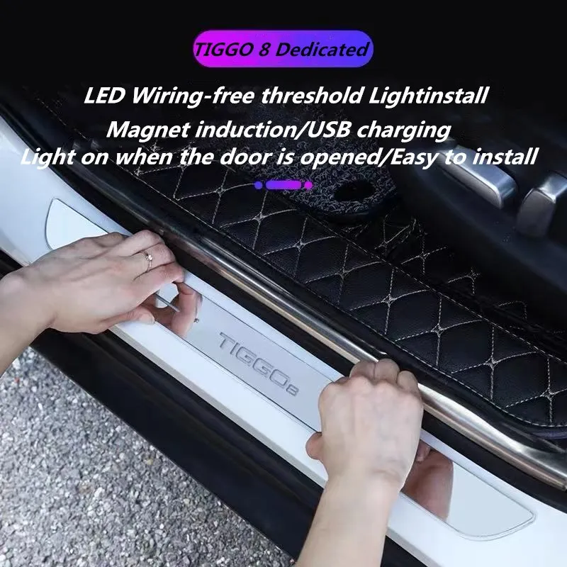 Автомобильный USB Мощность светодиодный Добро пожаловать педаль светильник автомобиля с нецарапающейся поверхностью педаль подоконник Путь лампы для Защитные чехлы для сидений, сшитые специально для CHERY TIGGO 8 плюс украшение автомобиля светильник