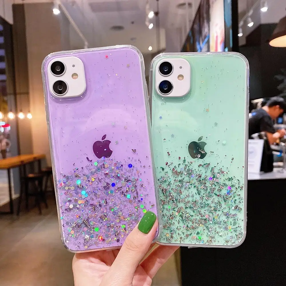 Блестящий Мягкий чехол со звездами для iPhone 11 12 Mini Pro SE 202...