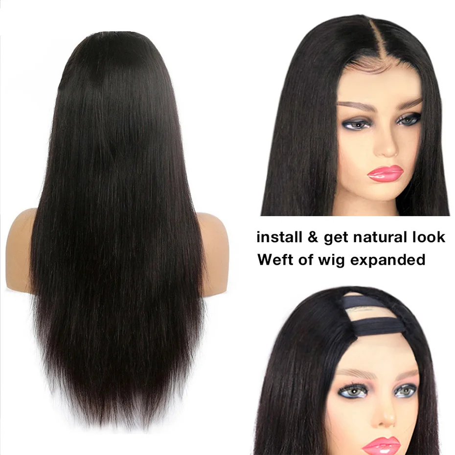 U-образные парики, малайзийские прямые человеческие волосы, парики для женщин, 150% Реми, дешевые человеческие волосы, парики без клея, U-образные парики # 1b