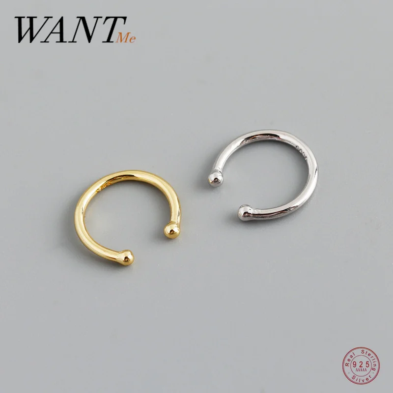 WANTME 925 стерлингового серебра минималистский модная Кафф серьги-клипсы для женщины, мужчины, девочки Без проникновения Ювелирное кольцо в нос
