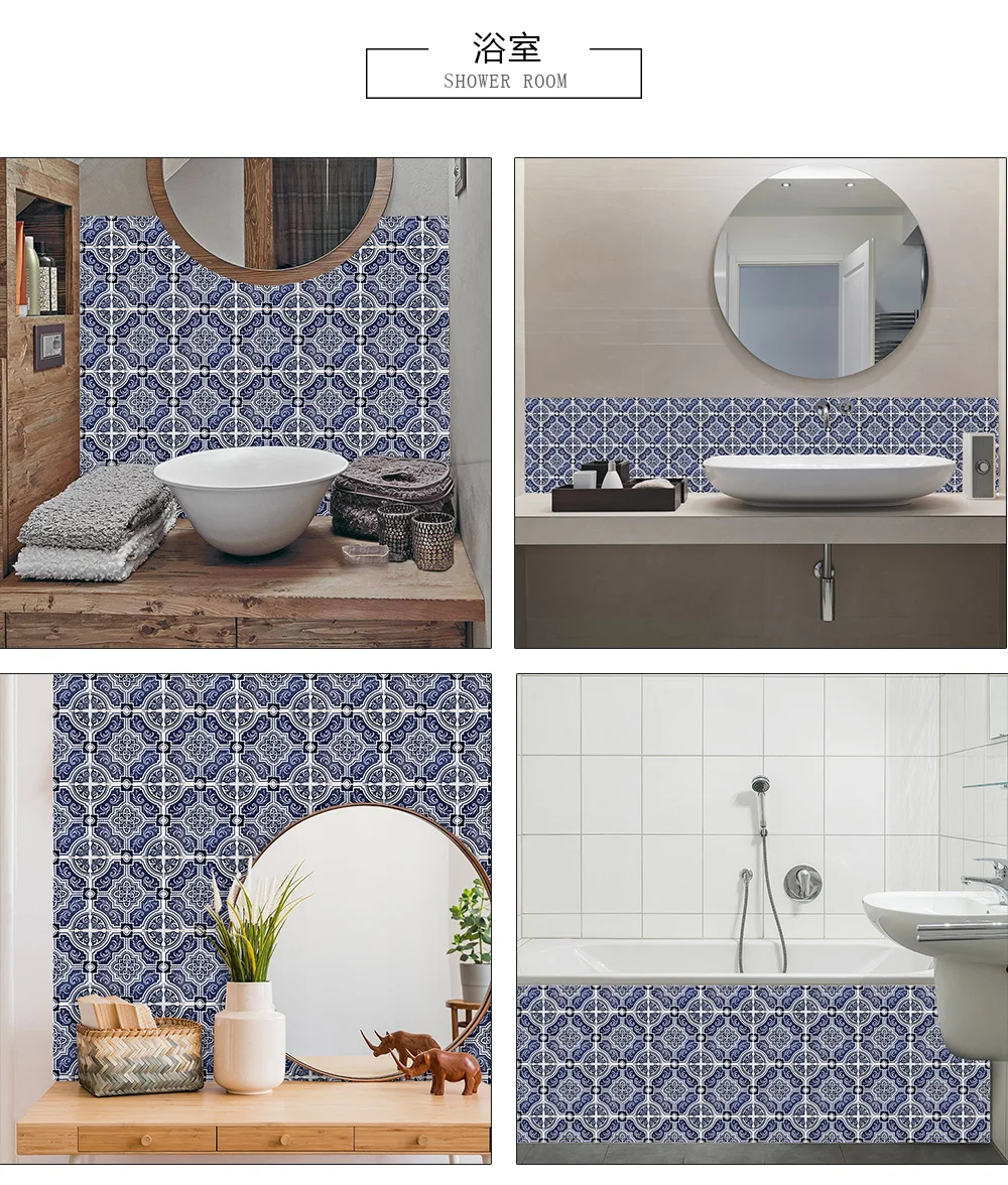 10 шт./компл. Ретро узор плитка наклейка на стену кухня ванная комната Домашний Декор водонепроницаемый маслостойкий пилинг и приклеивающаяся поверхность глянцевые обои