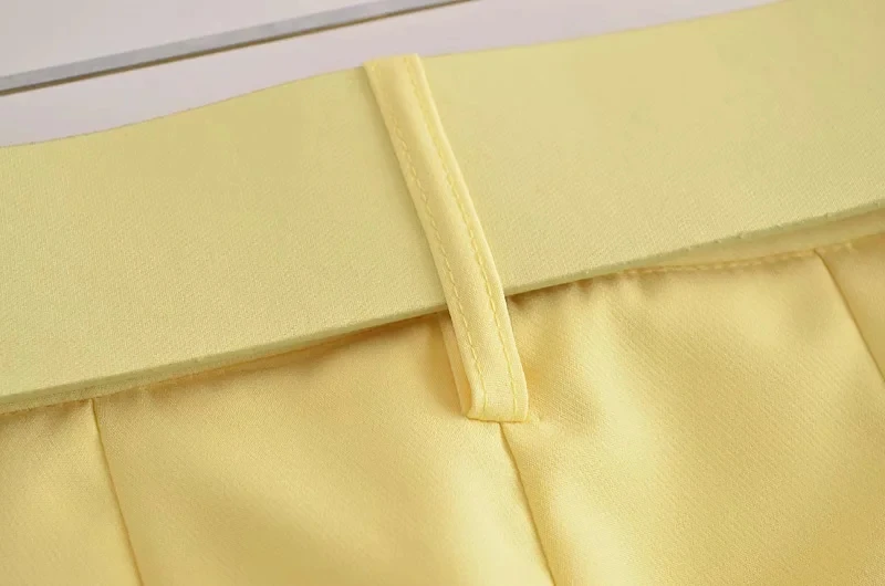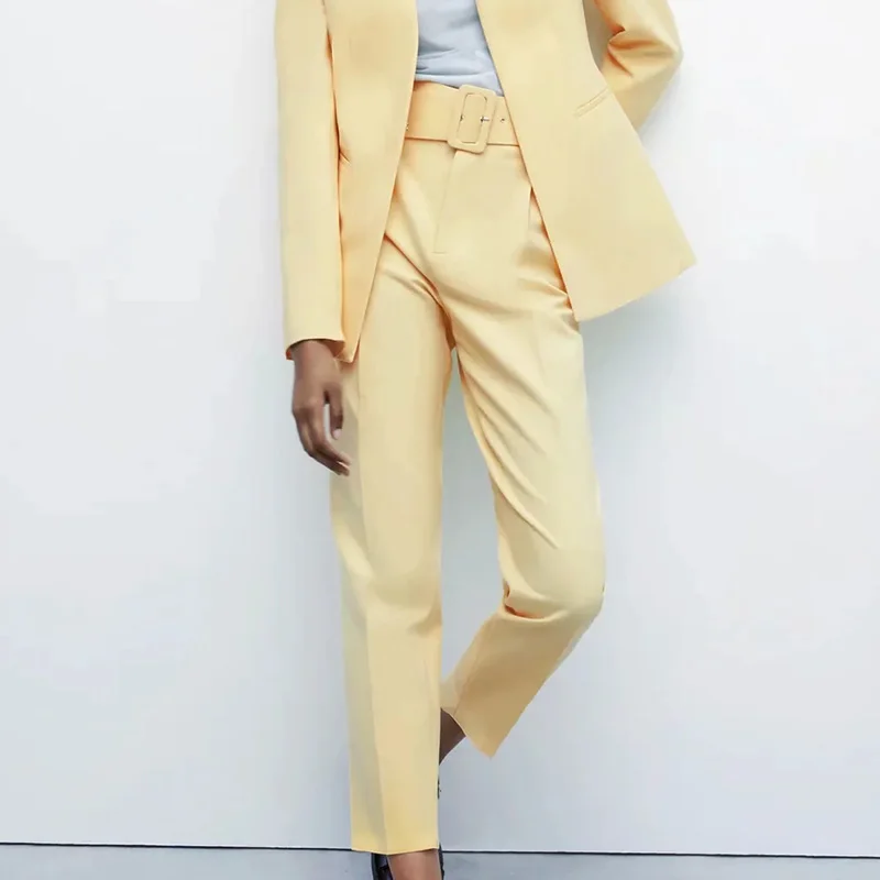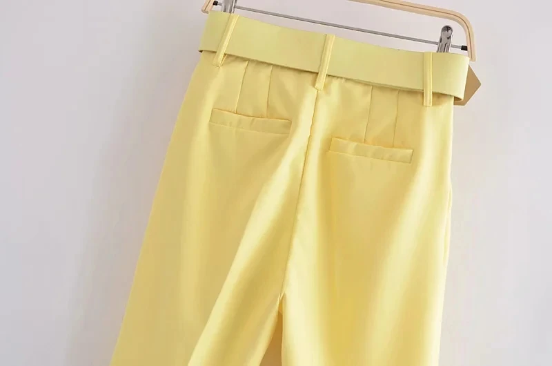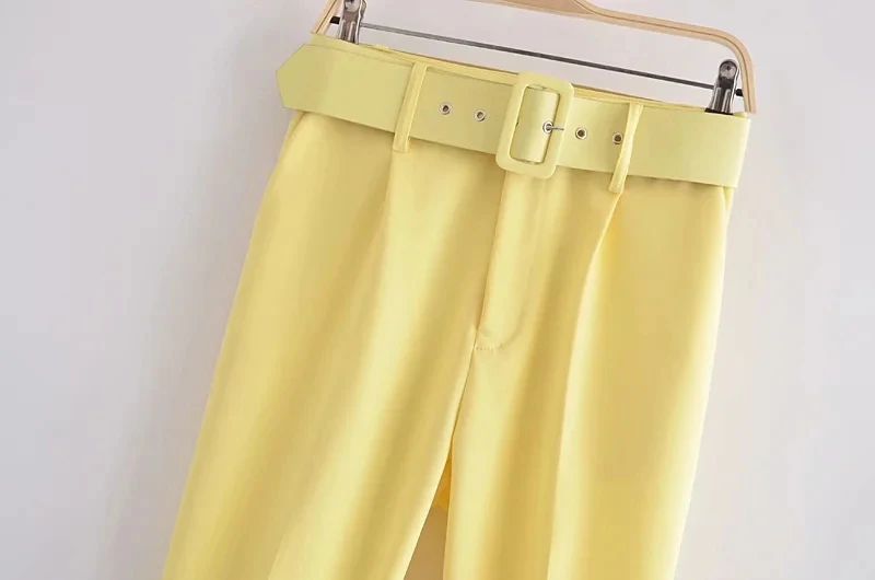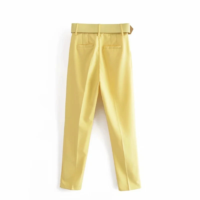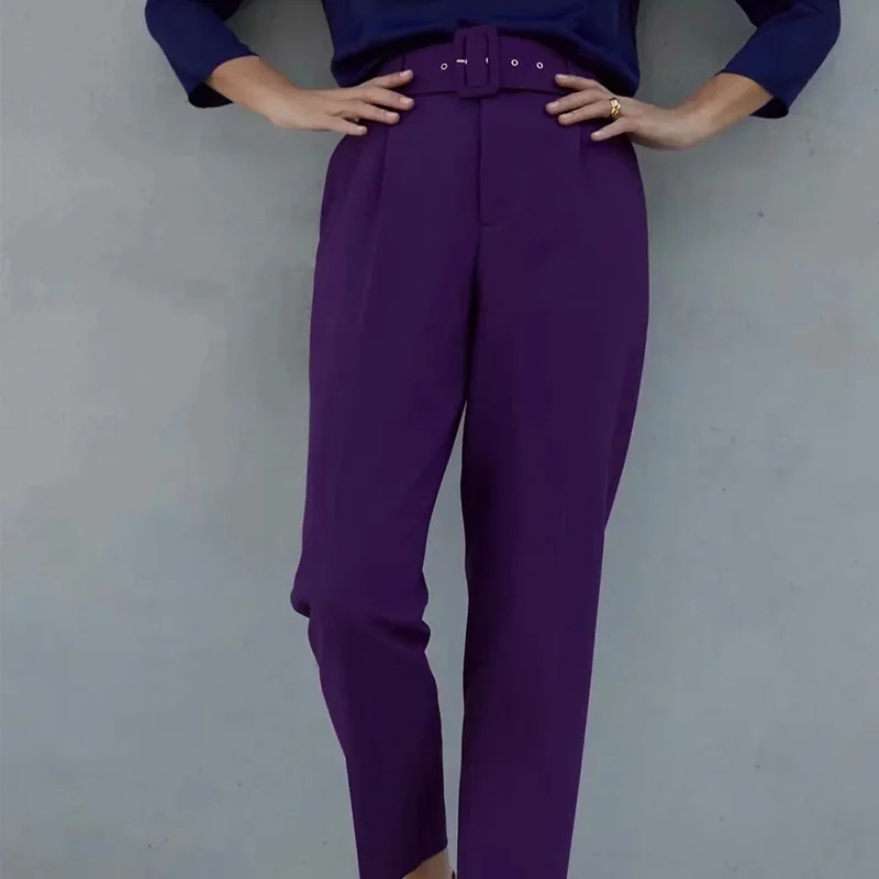 Брюки женские с завышенной талией, офисный комплект из блейзера и прямых фиолетовых свободных брюк с поясом, желтые брюки-султанки