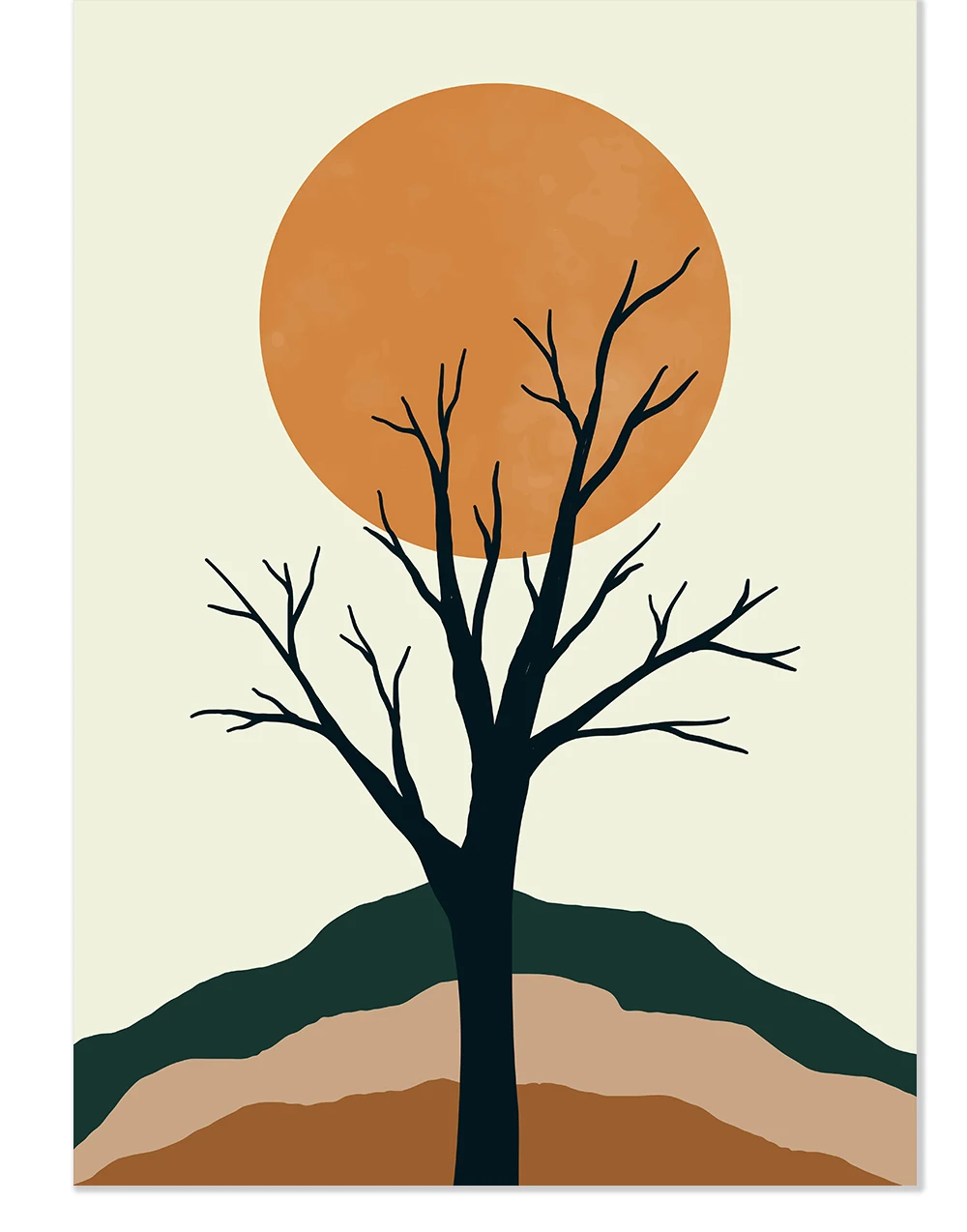 Пейзаж бохо, холст, живопись, настенный постер, пустыня, растение, ...