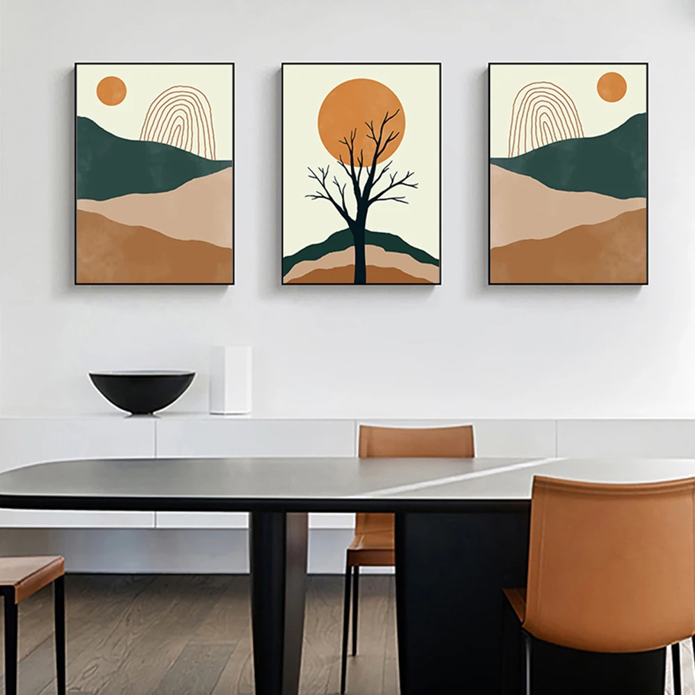 Абстрактный пейзаж бохо, скандинавский постер и принты, Женский рис...