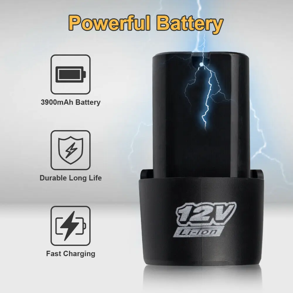 Максимальный крутящий момент: 100 нмЛитиевая Батарея: 12 ВРабочая скорость: Регулируемая Рабочая скоростьРазмер: прибл. 29x29x5 см/11,4*11,4*2 дюймаСкорость холостого хода: 0-об/минОсобенности:1. Высокая/низкая скорость, подходит для различных рабочих ситуаций.2. Супер удобные кнопки включения питания, скорость определяется давлением, которое вы нажимаете.3. Аккумулятор большой емкости 12 В, перезаряжаемый и длительный срок службы батареи.4. Сверхпрочный набор сверл, более удобный в использовании.5. Научный дизайн отверстий для вентиляции и рассеивания тепла делает машину более прочной.6. Светодиодный светильник, позволяющий легко работать в темноте7. Мощная и эффективная защита от повреждения машины, вызванного чрезмерной температурой двигателя.8. Используется для сверления металла и дерева, подходит для различных работ на площадке, для обеспечения устойчивой поддержки большой мощности.Примечание:1. Обязательно используйте специально назначенную перезаряжаемую батарею.2. Если есть какие-либо повреждения, пожалуйста, не разбирайте, не ремонтируйте и не меняйте, чтобы избежать короткого замыкания между электродами аккумулятора.3. Из-за разницы светильник щении и настройках экрана цвет элемента может немного отличаться от изображения.4. Возможны незначительные различия в размерах из-за разных измерений вручную.