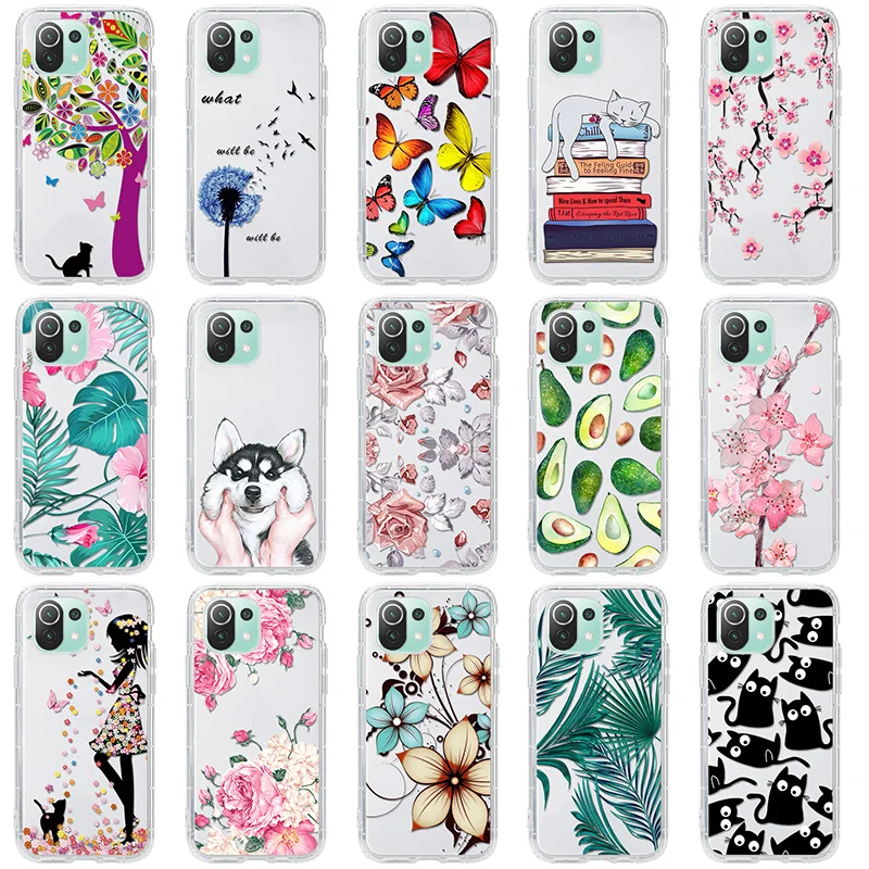 Чехол 6,55 дюйма для Xiaomi Mi 11 Lite, мягкий силиконовый чехол с подушкой безопасности для Xiaomi Mi11, Mi 11 Lite, 11i, чехол с цветочным принтом, листьями, авокадо, чехол