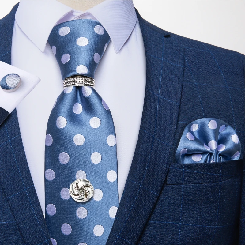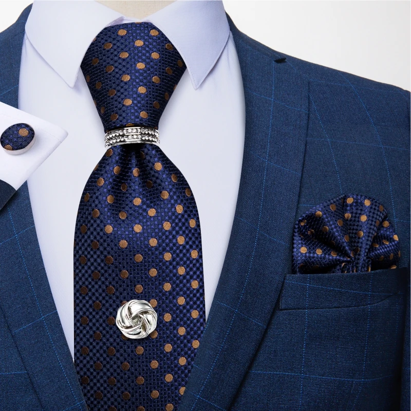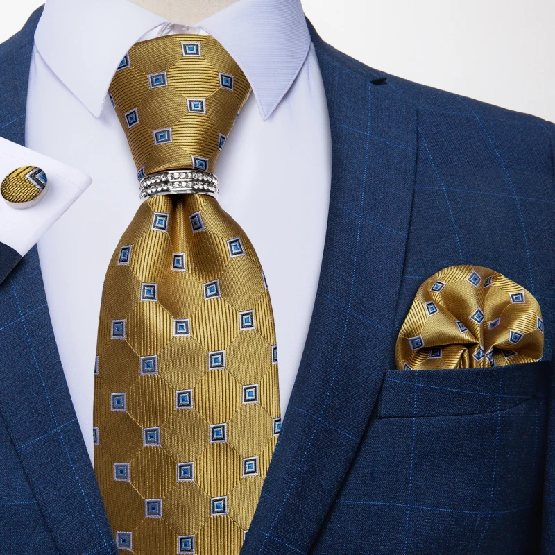 Желтый клетка, горошек Галстуки для Для мужчин Роскошные Свадебная вечеринка Для мужчин шеи галстук Набор платок запонки зажим для галстука прихватка с цепочкой Для мужчин подарок DiBanGu