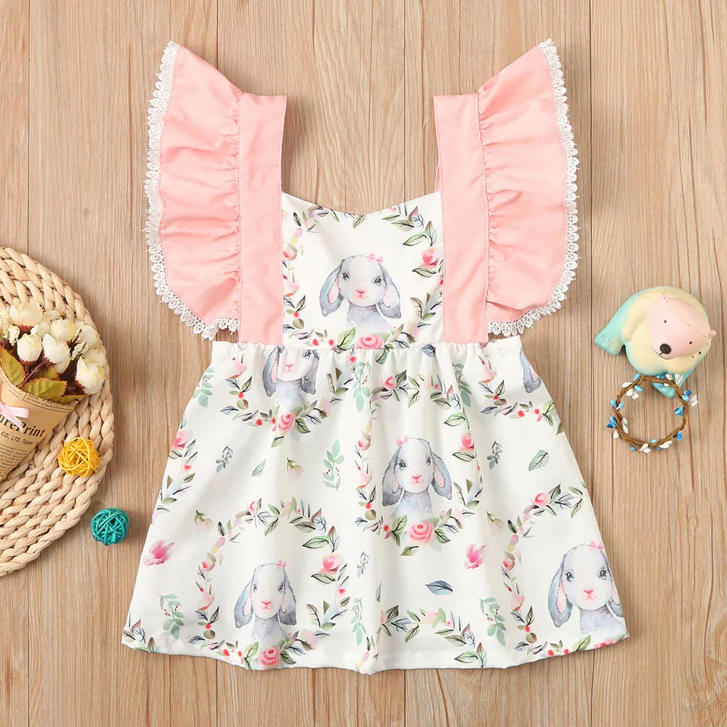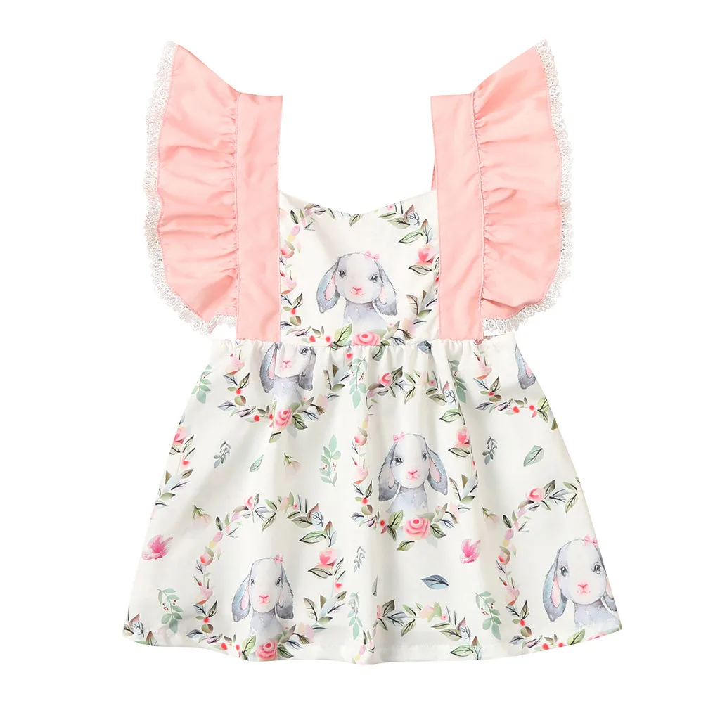 Платье для маленьких девочек на Пасху, с принтом кролика, с открытой спиной, с оборками