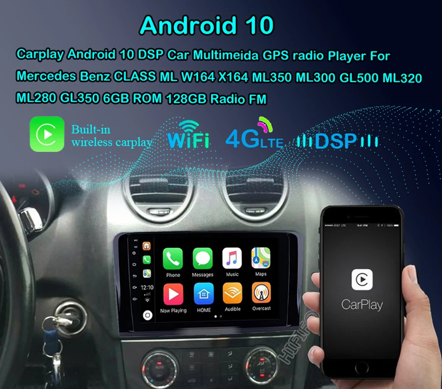 Мультимедийный автомобильный радиоплеер IPS 6 + 128G Android DSP, GPS, для Mercedes Benz класса ML W164 X164 ML350 ML300 GL500 ML320 ML280 GL350