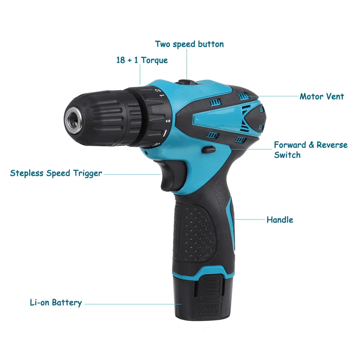 Дрель Wolike аккумуляторная, 12 В, ударная отвертка, 18 + 1, с 2 литий-ионными аккумуляторами