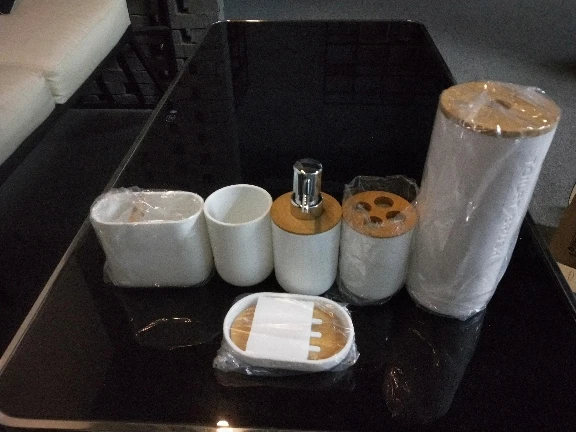 exatamente como a foto, achei um pouco fraca a escova de banheiro, mas é muito lindo.