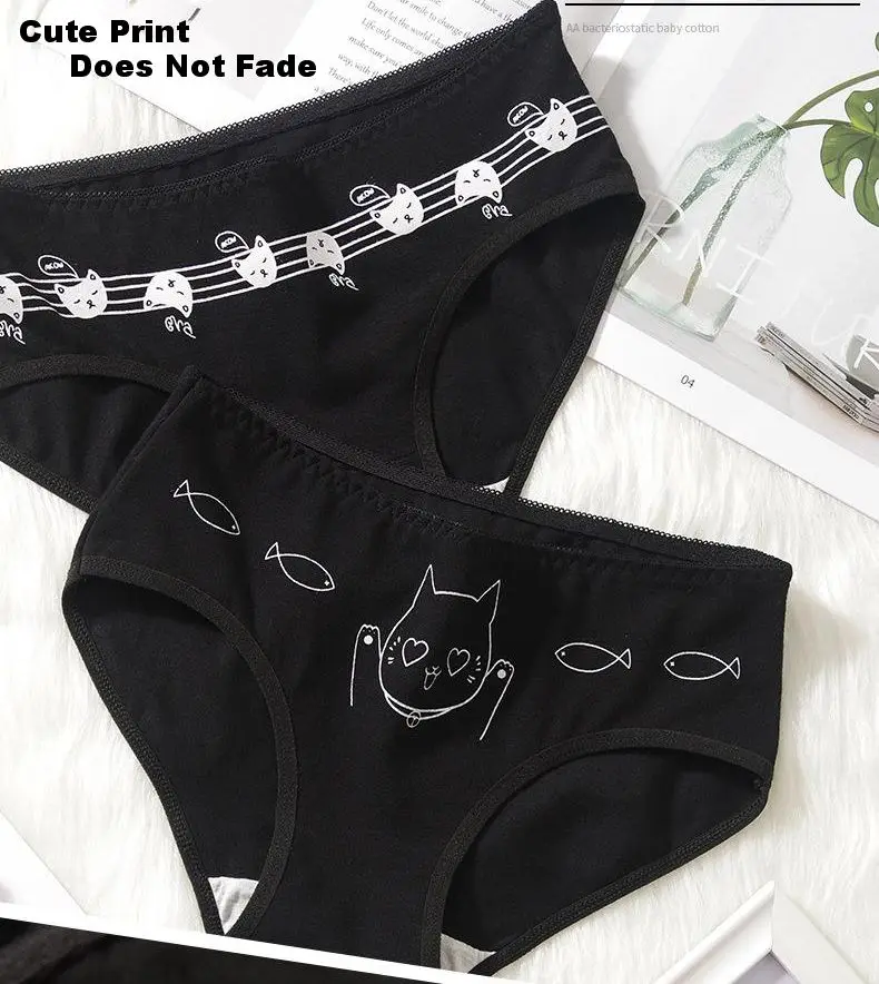 3 шт.компл., трусы с изображением кота и рыбы, хлопковое женское нижнее белье, сексуальные трусики, женские трусы, однотонные трусики для девочек, нижнее белье M-XL