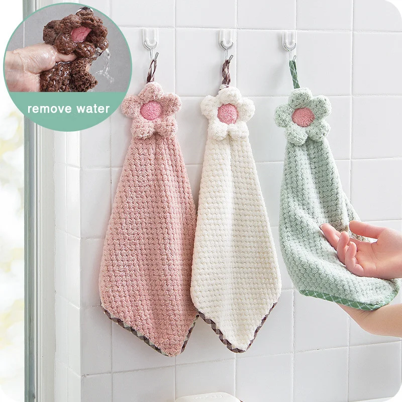 Полотенца для рук, подвесные, из кораллового флиса, впитывающие, с цветами, мягкие, уборка кухни, ванной, не ворсовые, солнцезащитные, полотенца с цветочным узором