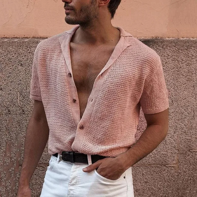 Однотонный вязаный кардиган, рубашки, весна-лето 2021, Мужская футб...