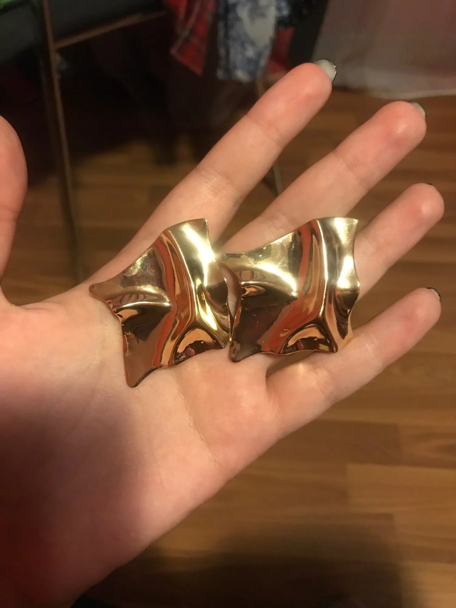 Серьги как на фото, насчет металла будет облазить или нет посмотрим в использовании