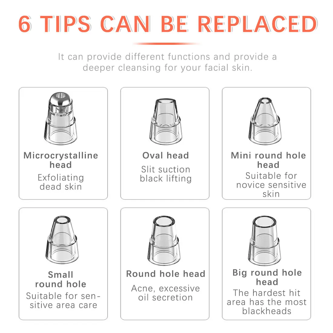 Упаковочный лист: 1 * устройство для удаления черных точек, 6 * Сменная головка, 1 * usb-кабель для зарядки, 1 * Руководство пользователя на английском языке