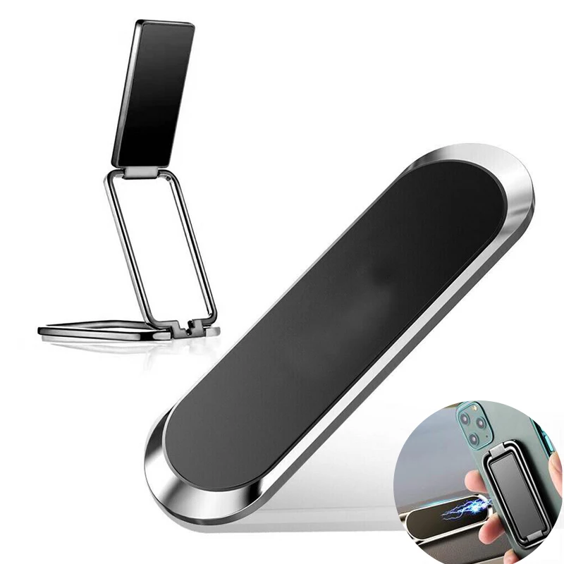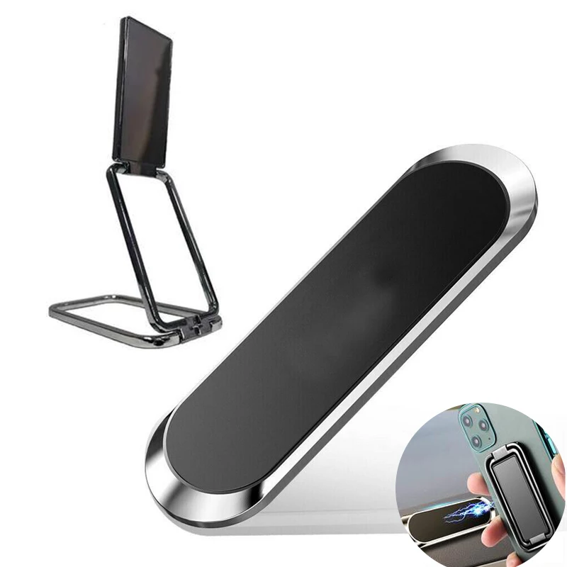 Универсальный складной мобильный телефон держатель с подставкой Двойные магнитные металлический Автомобильный держатель для телефона кронштейн Мини поперечного сечения полосы стенд для IPhone12, Xiaomi