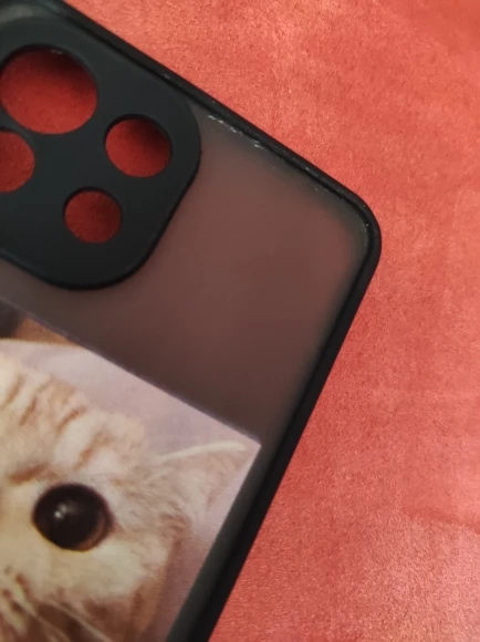 Чехол дошёл быстро - чуть меньше трёх недель прошло. В целом товар неплохой, но на фото можно увидеть, что внизу котика зелёная полоса, да и рисунок нанесен немного криво, также виден клей. Мне нравится, что кнопки громкости другим цветом - красным. и сочетаются с котиком. Чехол довольно жёсткий. В принципе за такую цену, товар -