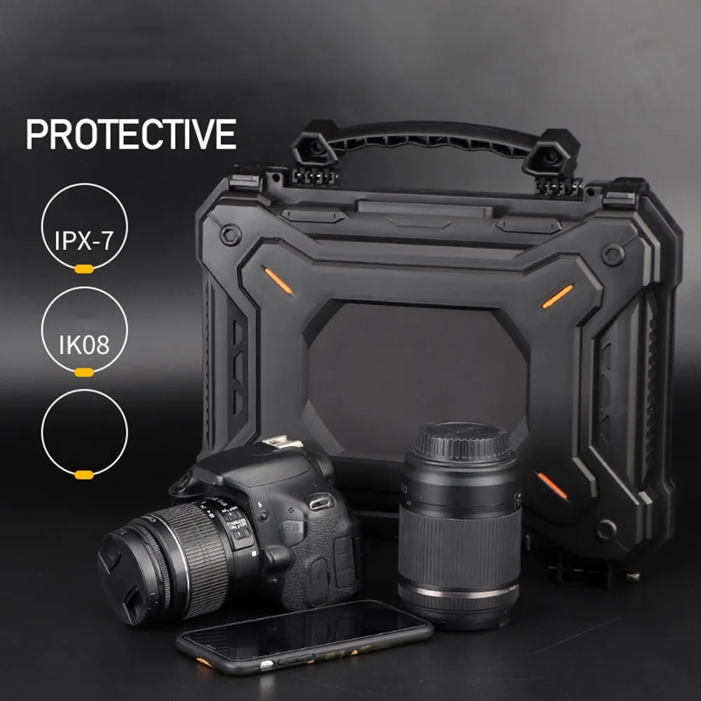 -- Высокое качество. Он изготовлен из пропиленового полимерного пластика, который является водонепроницаемым, ударопрочным и устойчивым.-- Multi-function.You можно хранить камеру, наушники, компьютер, телефон, пистолет.-- Поролоновые вставки. Вы можете отрегулировать его в соответствии с различными элементами.-- IK08 ударопрочный. Он защитит ваши предметы от повреждений.-- 5-метровая Водонепроницаемость с резиновым уплотнением 5 мм и Защелкивающейся усиленной защелкой