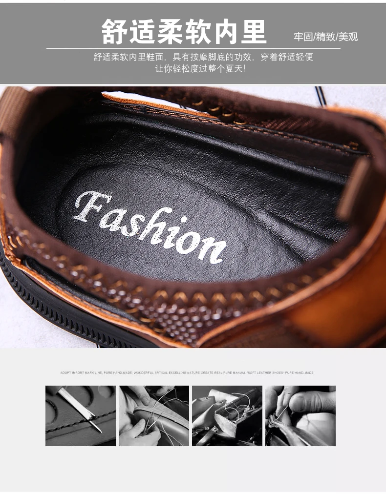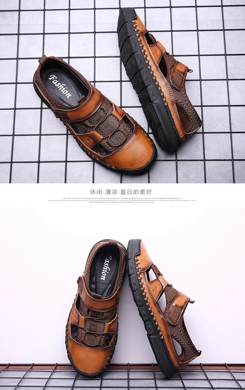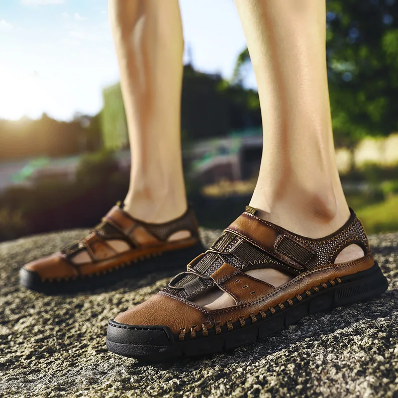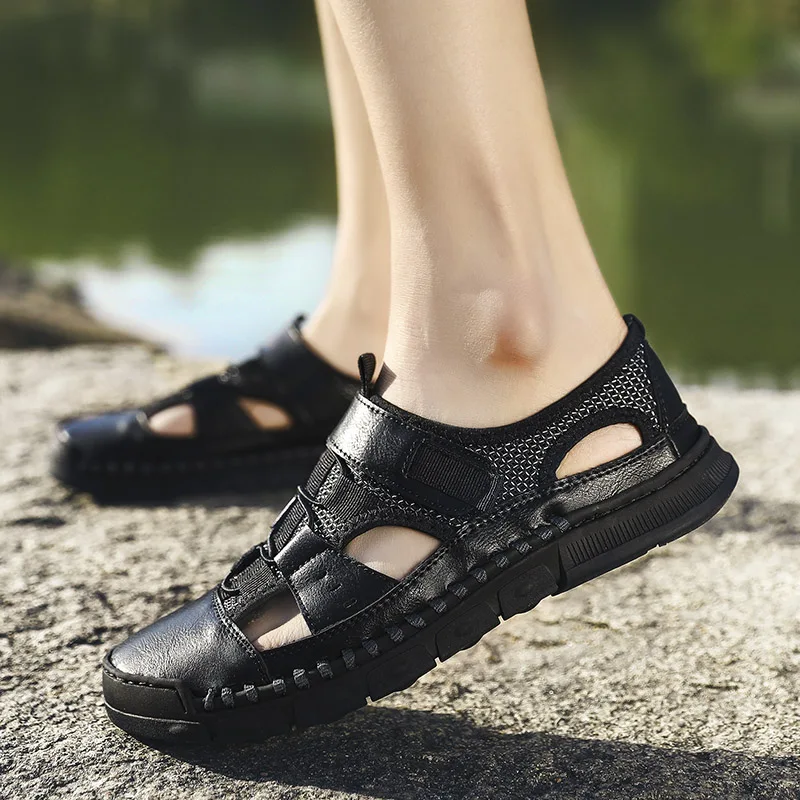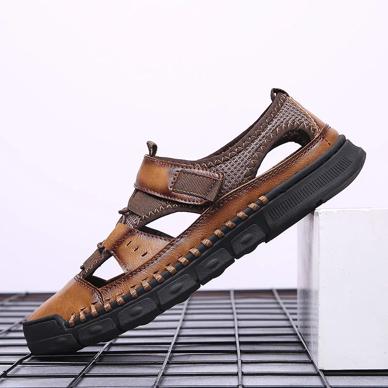 Мужские сандалии с перфорацией, повседневные кожаные сандалии с мягкой подошвой, Нескользящие, с перфорацией, лето 2021