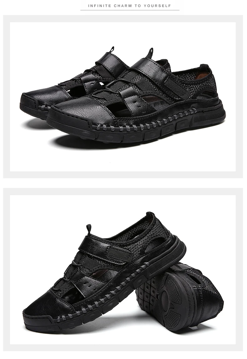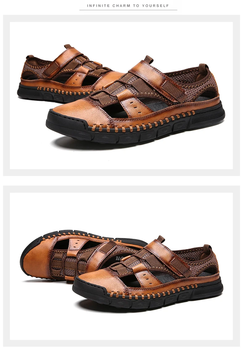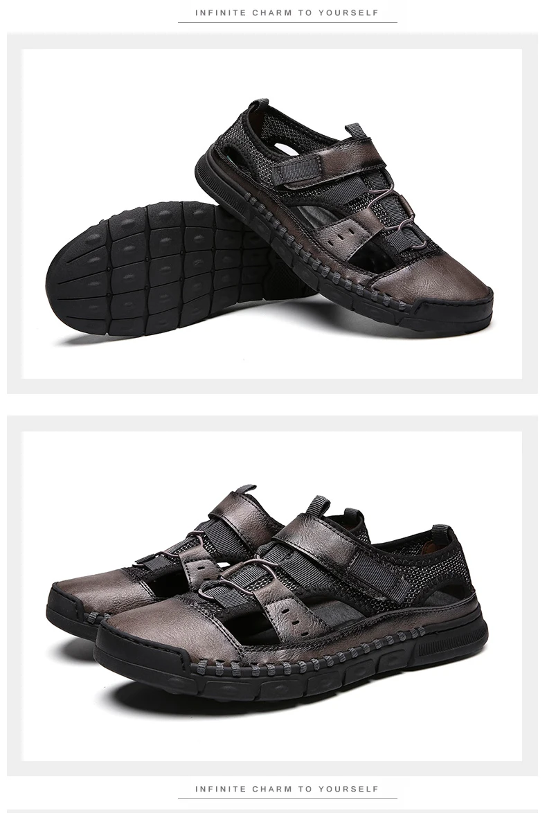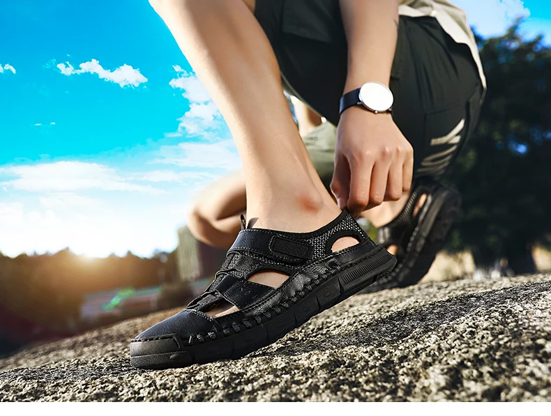Мужские сандалии с перфорацией, повседневные кожаные сандалии с мягкой подошвой, Нескользящие, с перфорацией, лето 2021