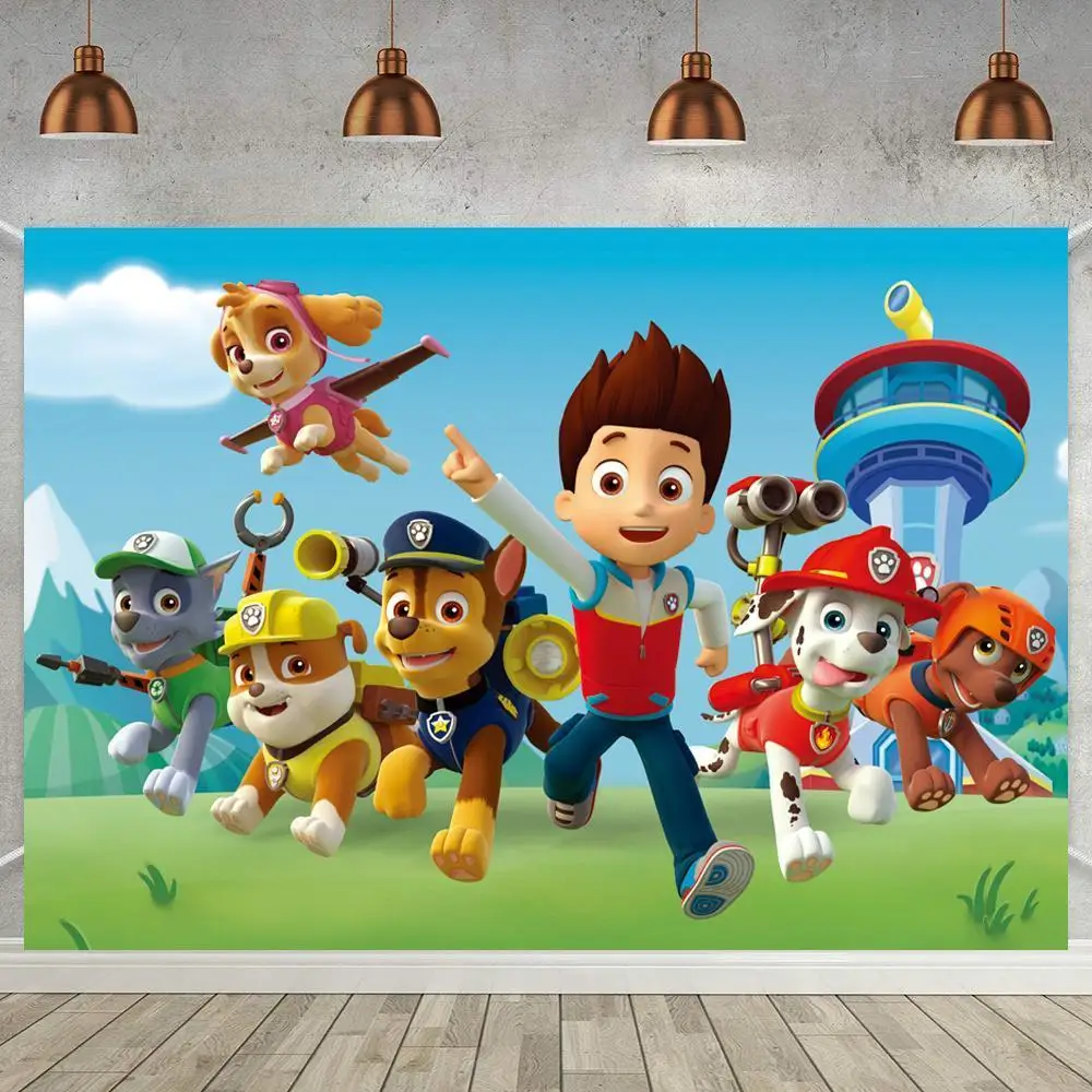 Ридер Семейные собаки голубое небо мультфильм Фон фотографии для декора стола патруль тема Дети День рождения фото фон постер