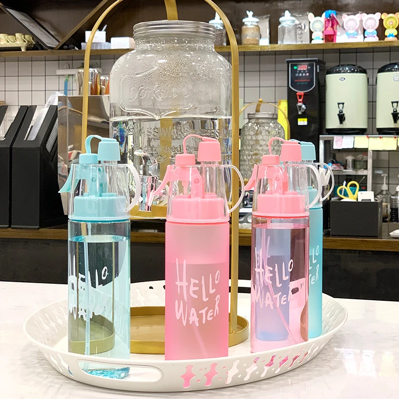 Спортивная бутылка для воды, чашка-распылитель с соломинкой, пластиковая круглая летняя чашка, шейкер для альпинизма, велосипеда на открытом воздухе, милая бутылка для напитков