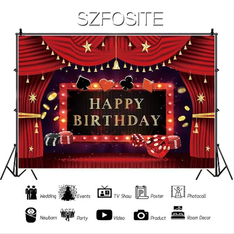 Фон для фотосъемки с Казино Лас-вегасом, покер на удачу, красный фон для дня рождения, украшение для вечевечерние НКИ мальчика, виниловый баннер для детской фотосъемки