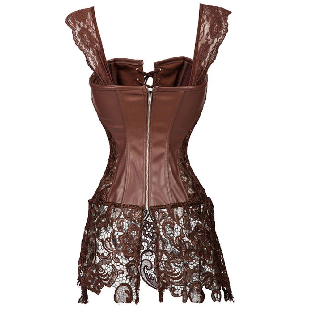 Пикантные женские туфли-лодочки из искусственной кожи, дамское нижнее белье, корсет из дышащего материала в стиле стимпанк талии тренер с молнией, к платью чёрный; коричневый корсеты и бюстье размера плюс S-6XL