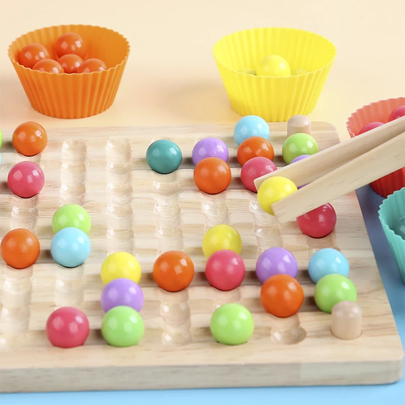 Обучающие деревянные игрушки Монтессори для самостоятельного обучения, искусственная бусина, тонкий мотор, настольная игра, Классификация цветов, образовательная