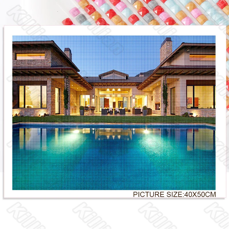 Алмазное украшение сделай сам, картина, замок и вилла, плавательный бассейн, квадратные алмазные круглые алмазы, настраиваемое настенное украшение icon star icon star icon star icon star icon star