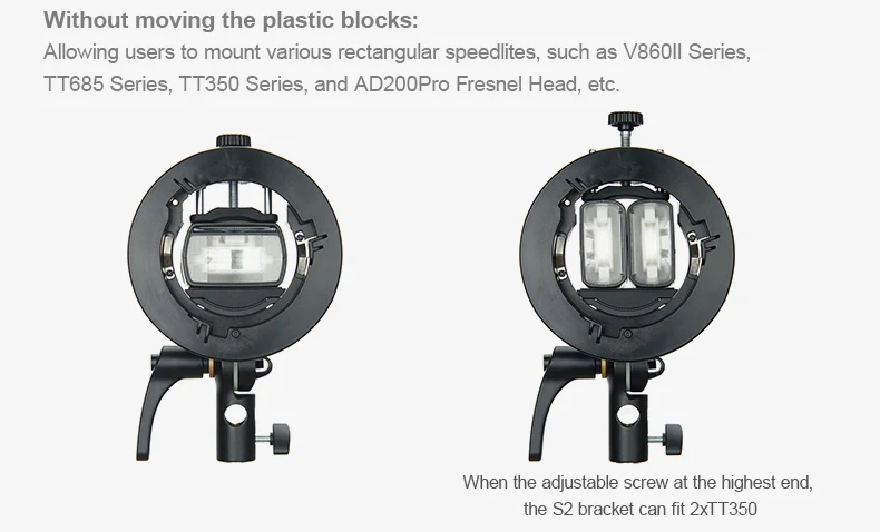 Оптимизированный запатентованный продукт превосходит кронштейн Godox S-type speedlite: универсальный, меньшего размера, портативный дизайн, отсутствие сборки/разборки и простая система крепления. Быстро добавьте аксессуары для осветительных приборов Bowens, чтобы получить креативные световые эффекты.