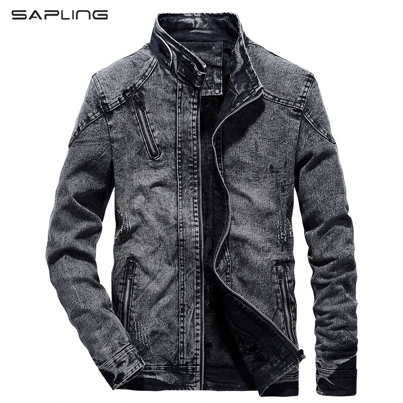 Джинсовые куртки Мужские приталенные однотонные повседневные винтажные мужские джинсовые пальто Модная одежда со стойкой для мужчин черные синие мужские куртки