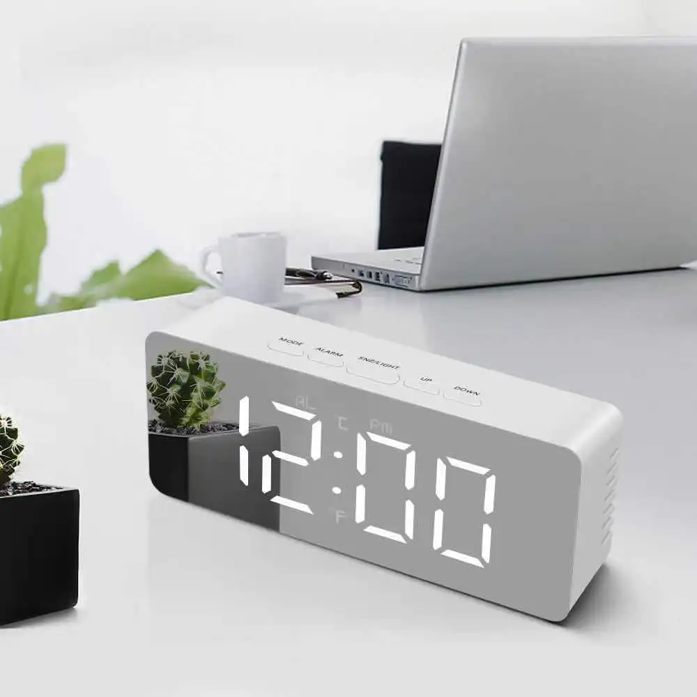 Современный дизайн светодиодный зеркальный цифровой будильник