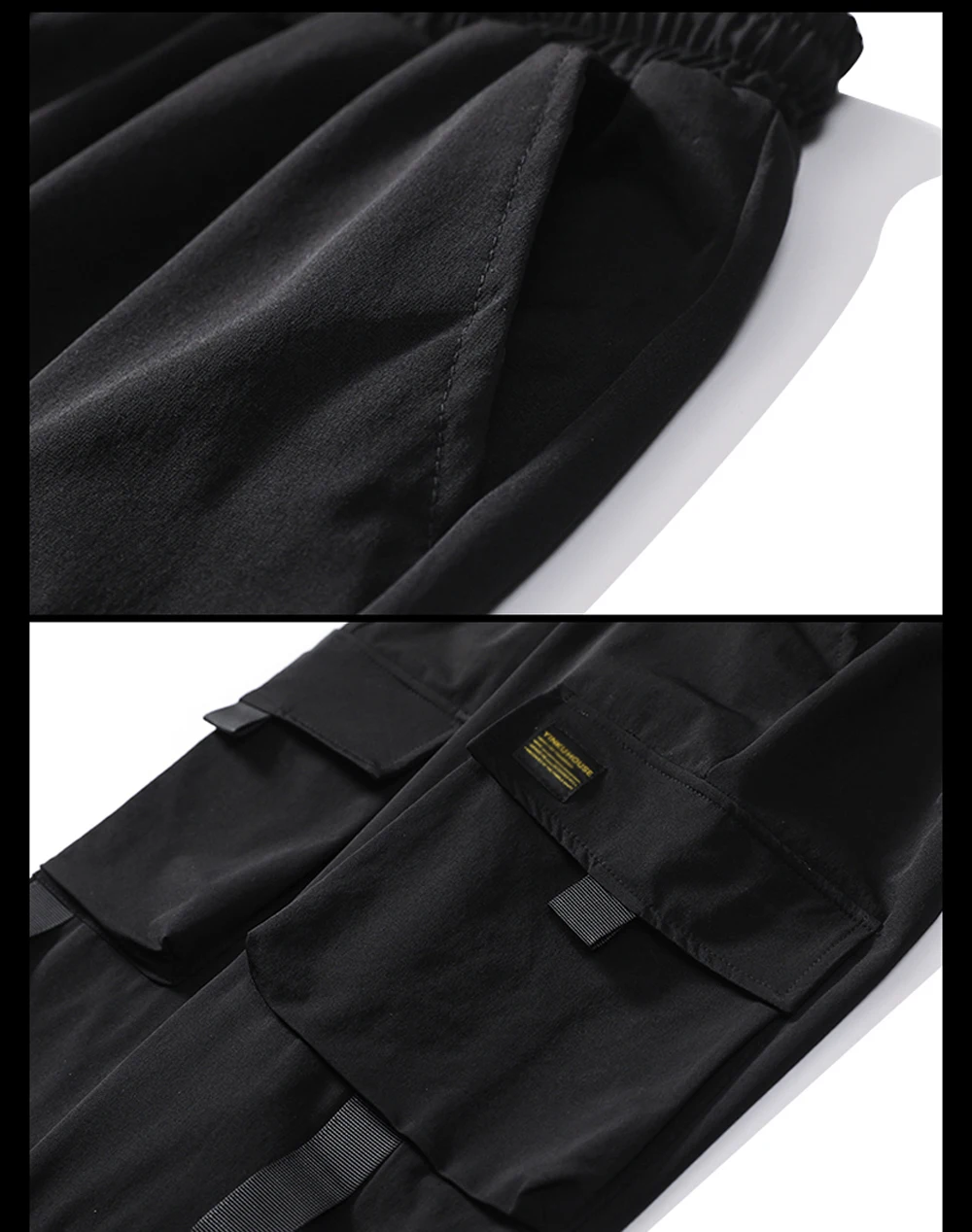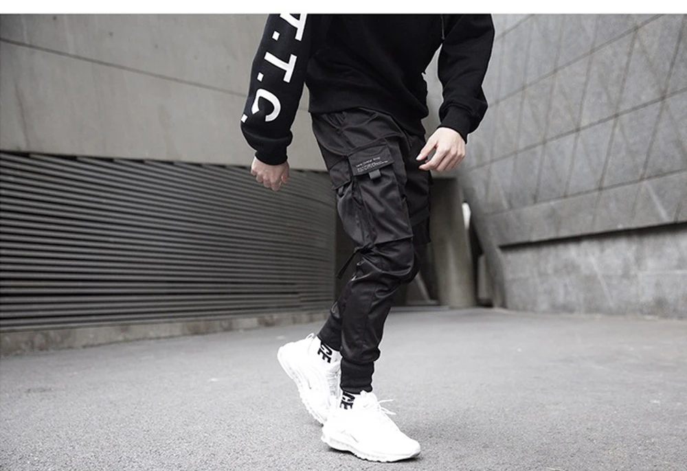Брюки-карго мужские, черные, с боковыми карманами, в стиле хип-хоп